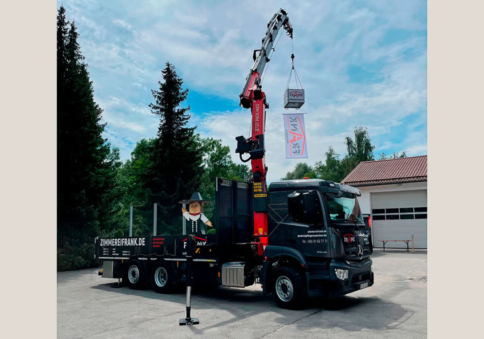 - Kann bis zu 2,3 Tonnen schwere Bauteile von der Ladefläche heben