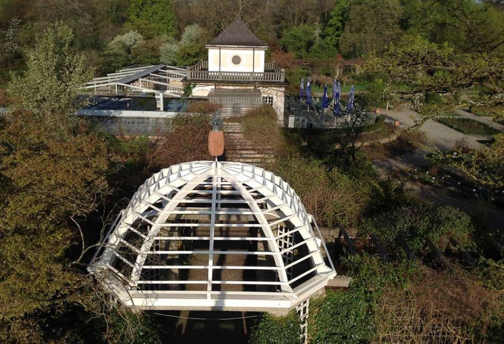 • Erneuerung der vier historischen Holzkuppelkonstruktionen im Garten