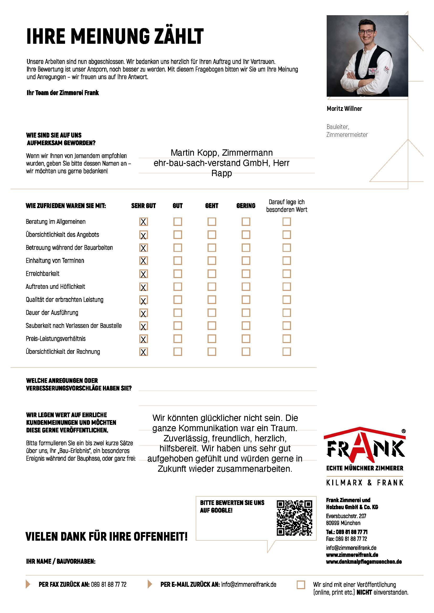 KILMARX-FRANK Zimmerei Muenchen - Blockzitat Anführungszeichen superschnell – supersauber – superfreundlich Danke supergut KILMARX-FRANK Zimmerei Muenchen - Blockzitat Anführungszeichen