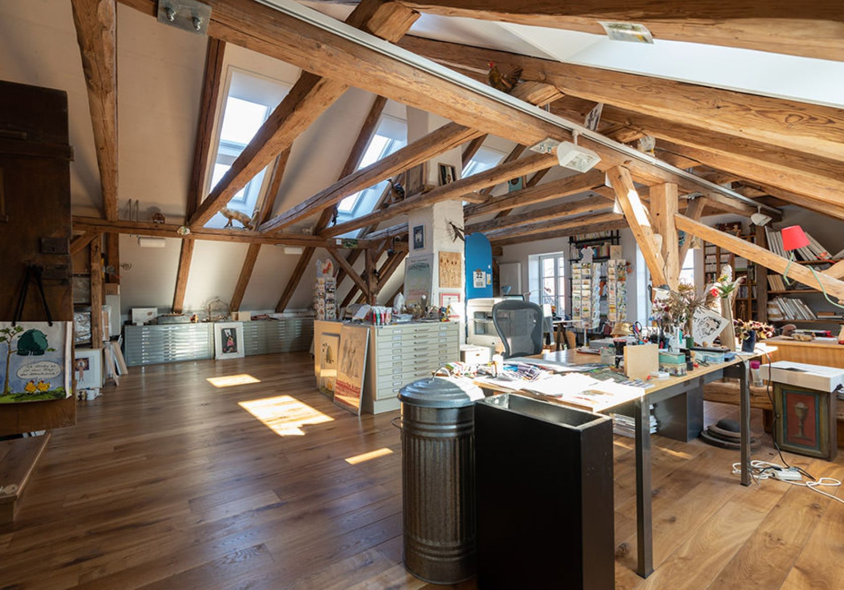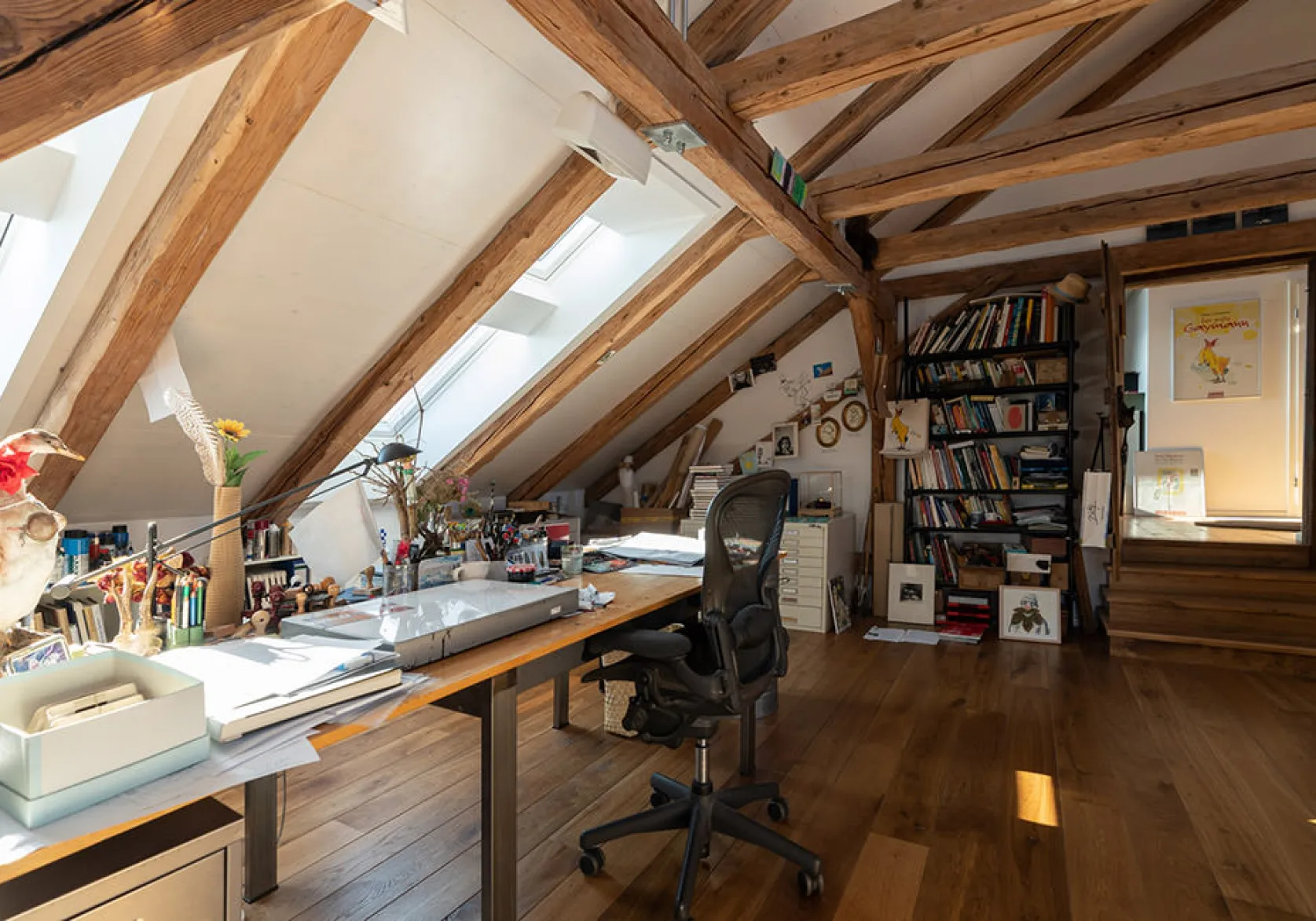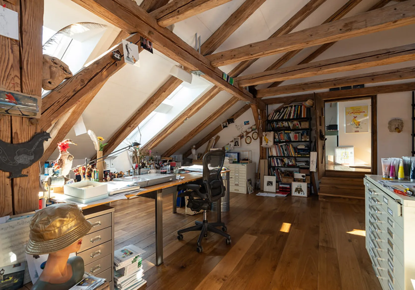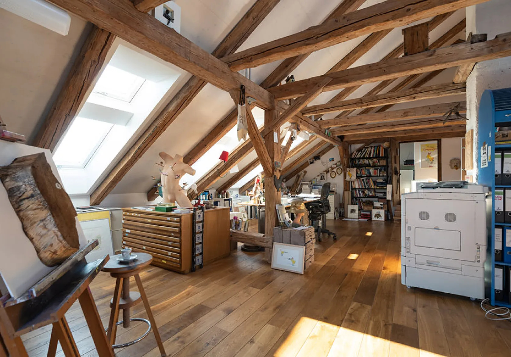 Dachgeschosssanierung und Ausbau eines historischen Gebäudes als Künstlerwerkstatt von Peter Gaymann