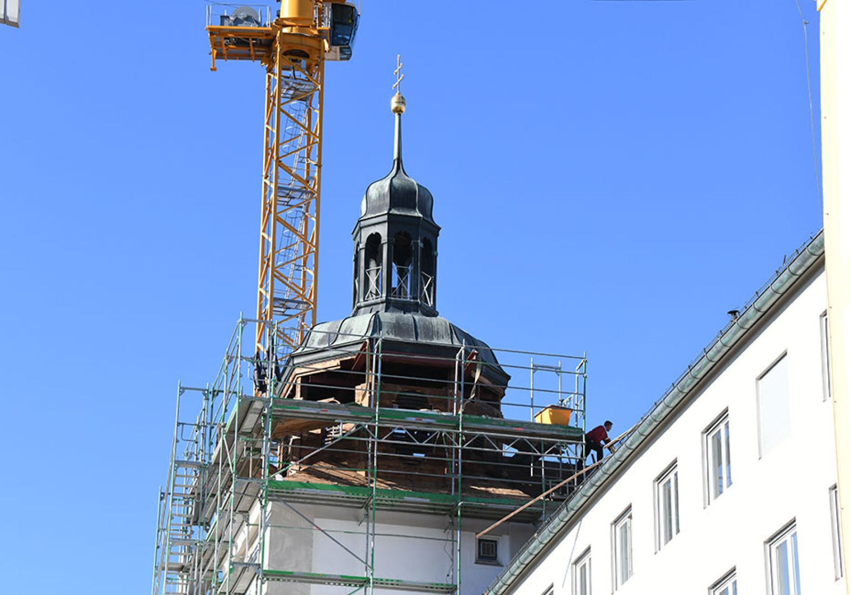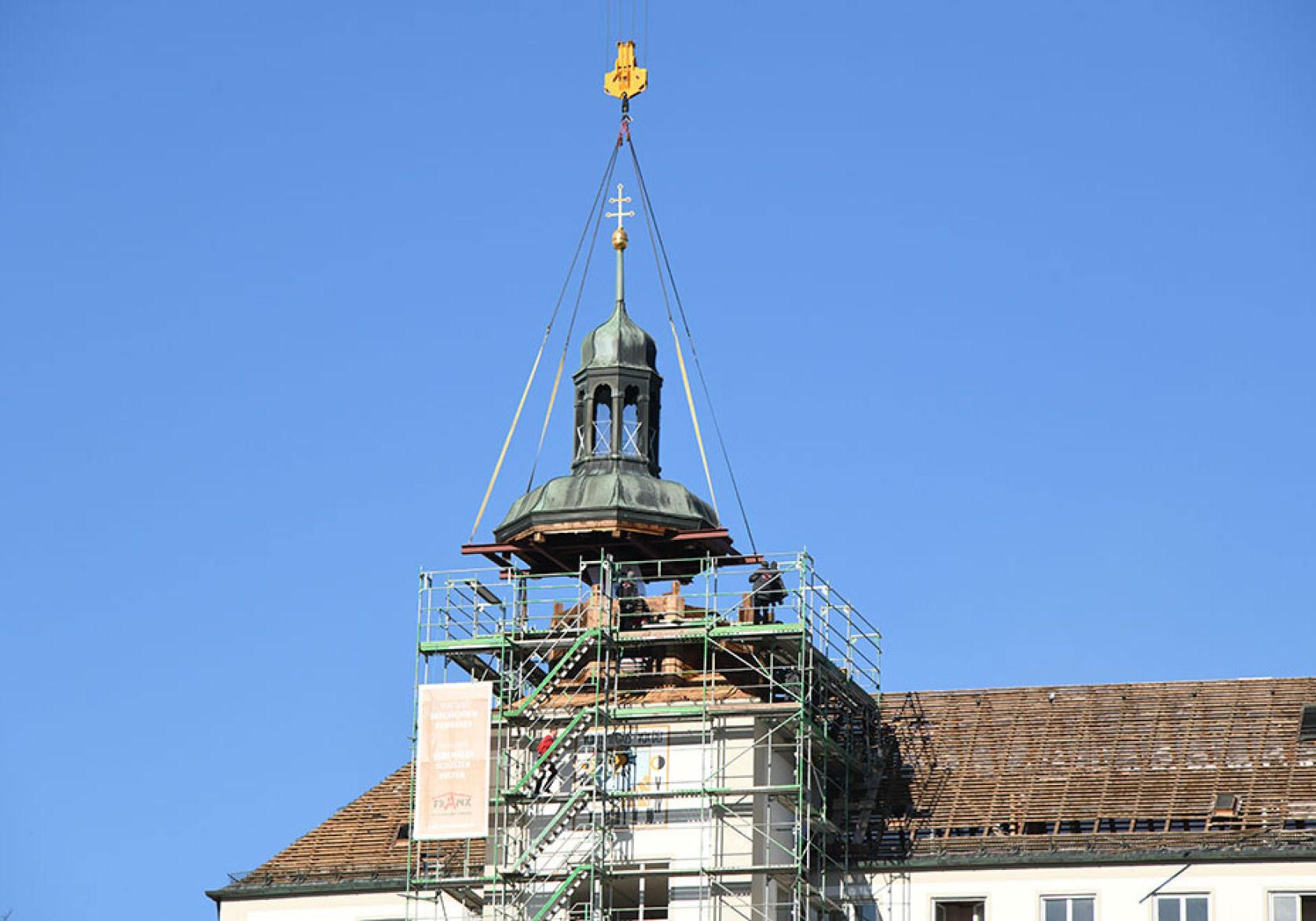 Abbau Turmspitze Domberg Frank Zimmerei und Holzbau GmbH&Co.KG München - Header Linien Frank Zimmerei und Holzbau GmbH&Co.KG München - Header Hintergrund
