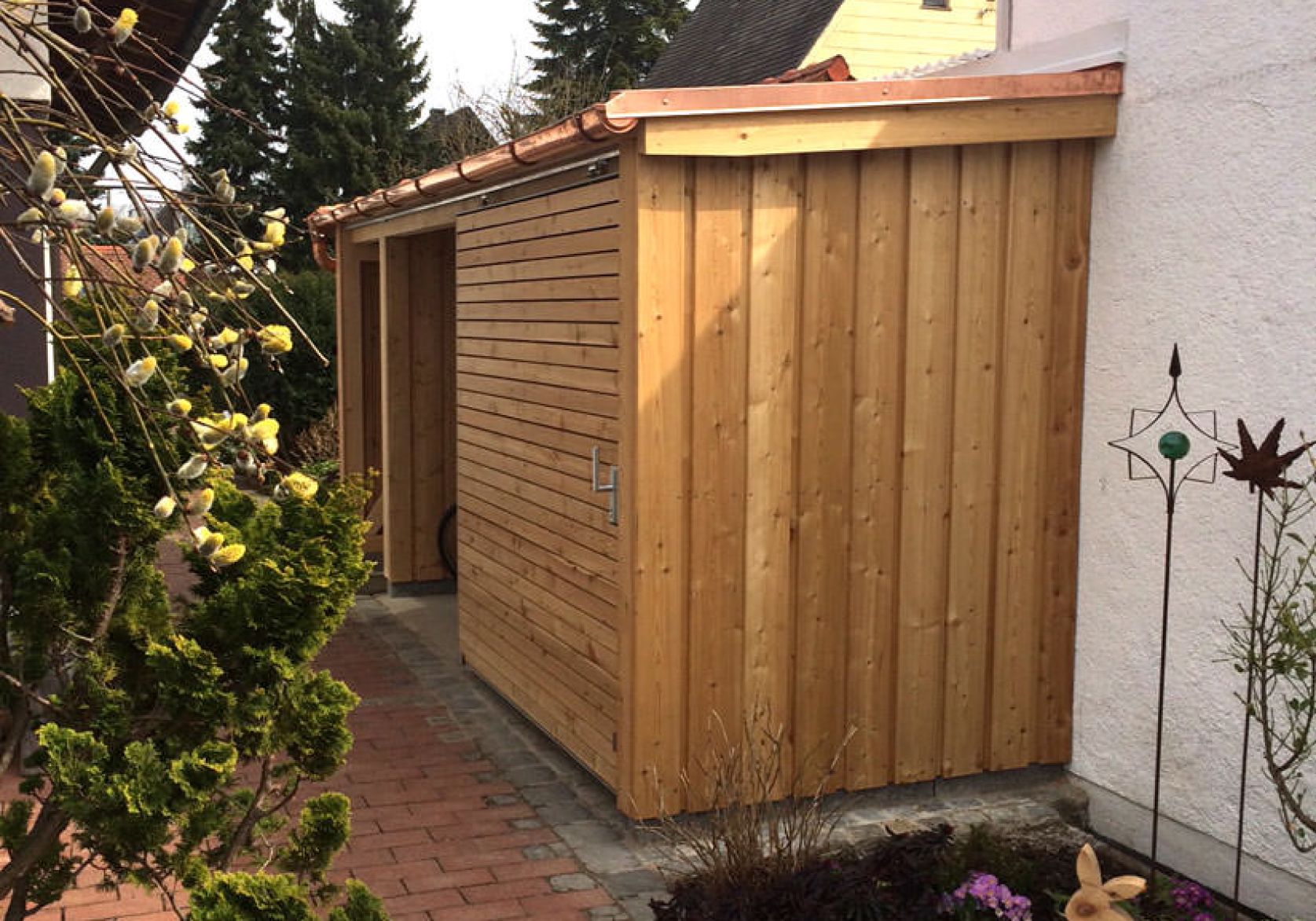 So schön und praktisch können Gartenhäuser sein, auch wenn wenig Platz da ist. Wir fertigen Ihr Gartenhaus ganz individuell nach Ihren Vorstellungen. So bekommen Sie genau das Gartenhaus, das auf Ihr Grundstück passt.