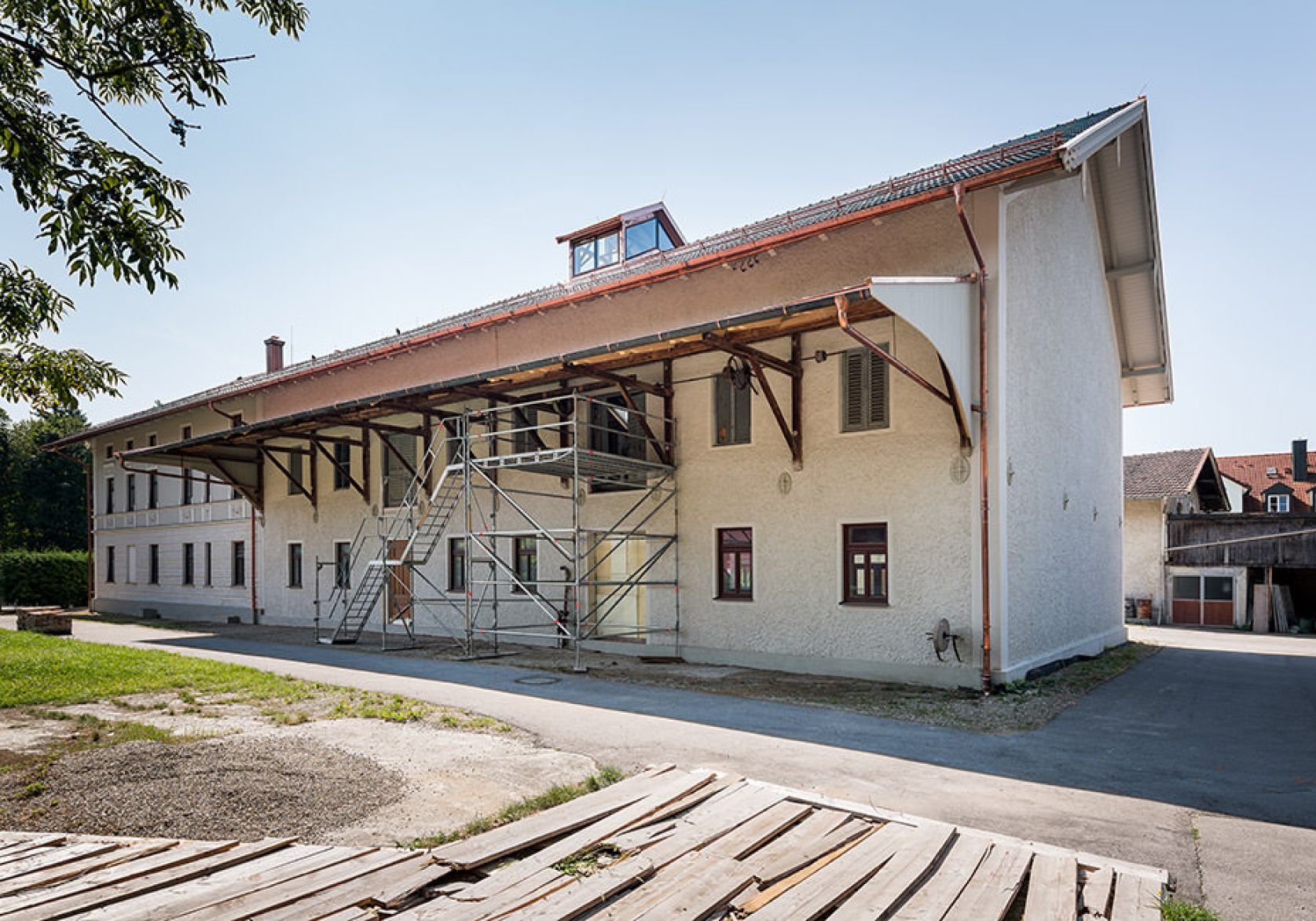 Instandsetzung des historischen und denkmalgeschützten ehem. Bauernhofes Ausführung der Zimmerer,-Dachdecher, Stahlbau, und Spenglerarbeiten