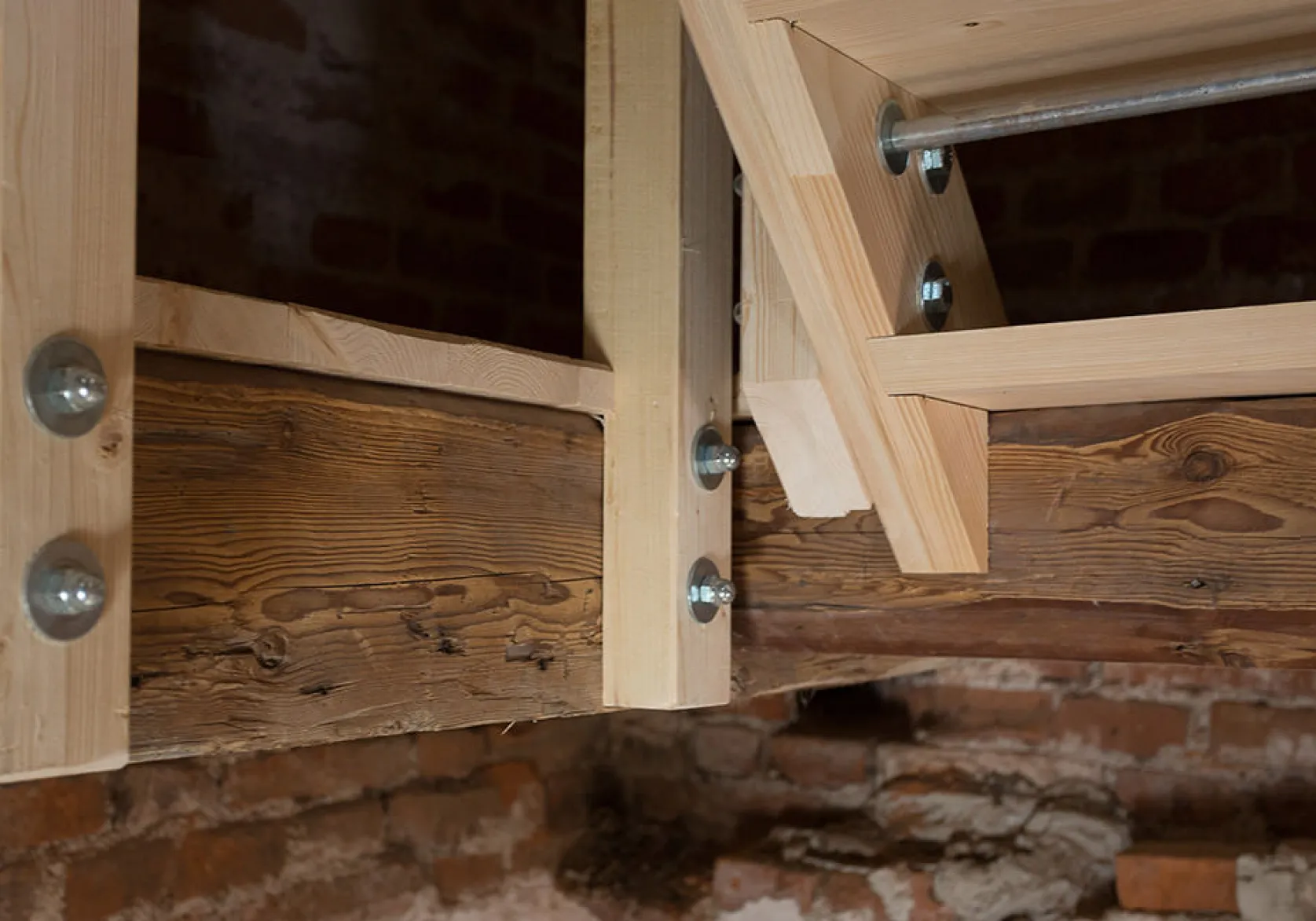 - Sanierung der Deckenbalkenlagen und Austausch der Bodenbeläge.