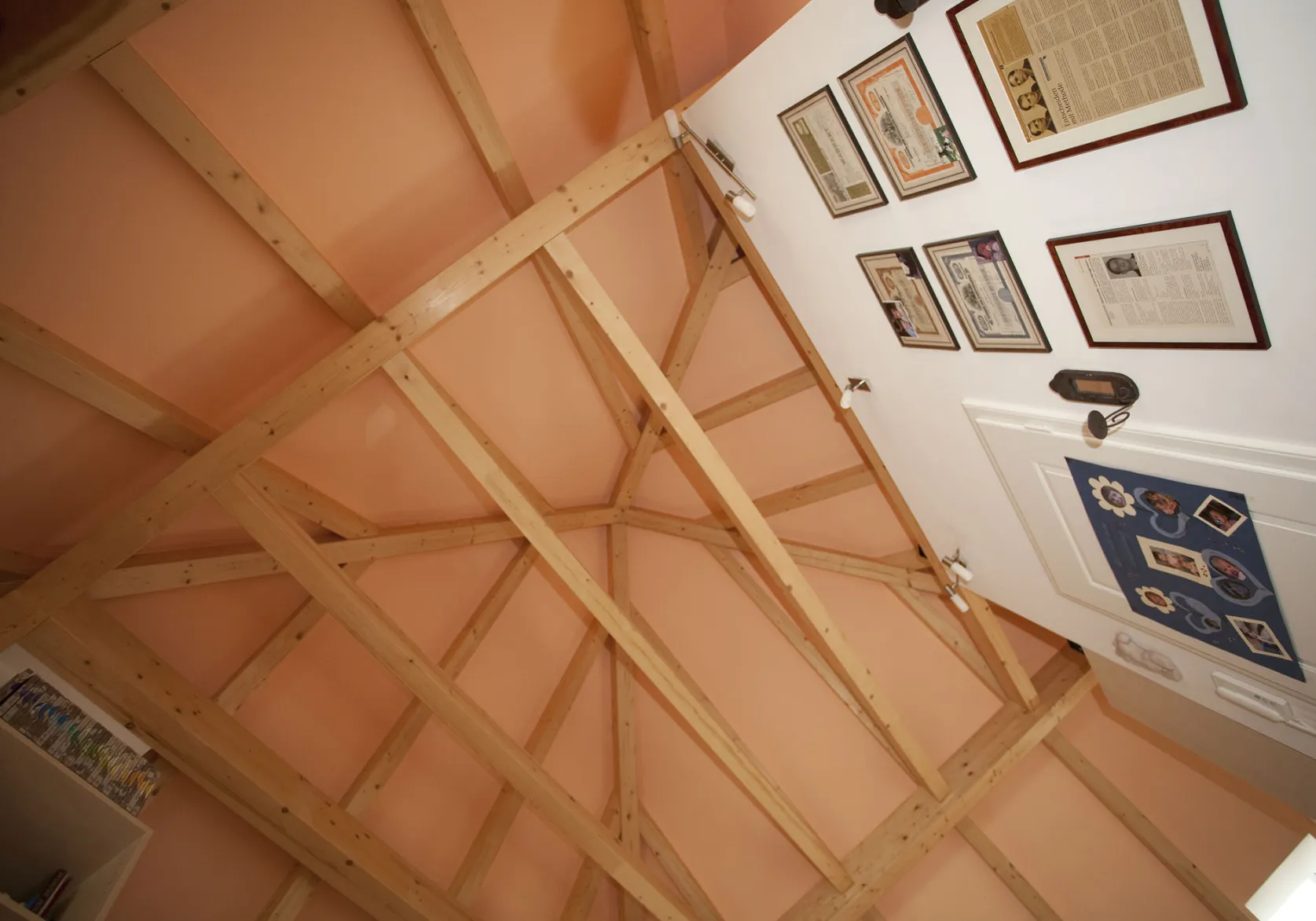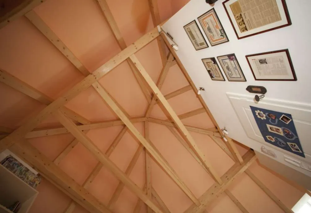 • Sichtbare Zeltdachkonstruktion, Sparrenfelder weiß verspachtelt