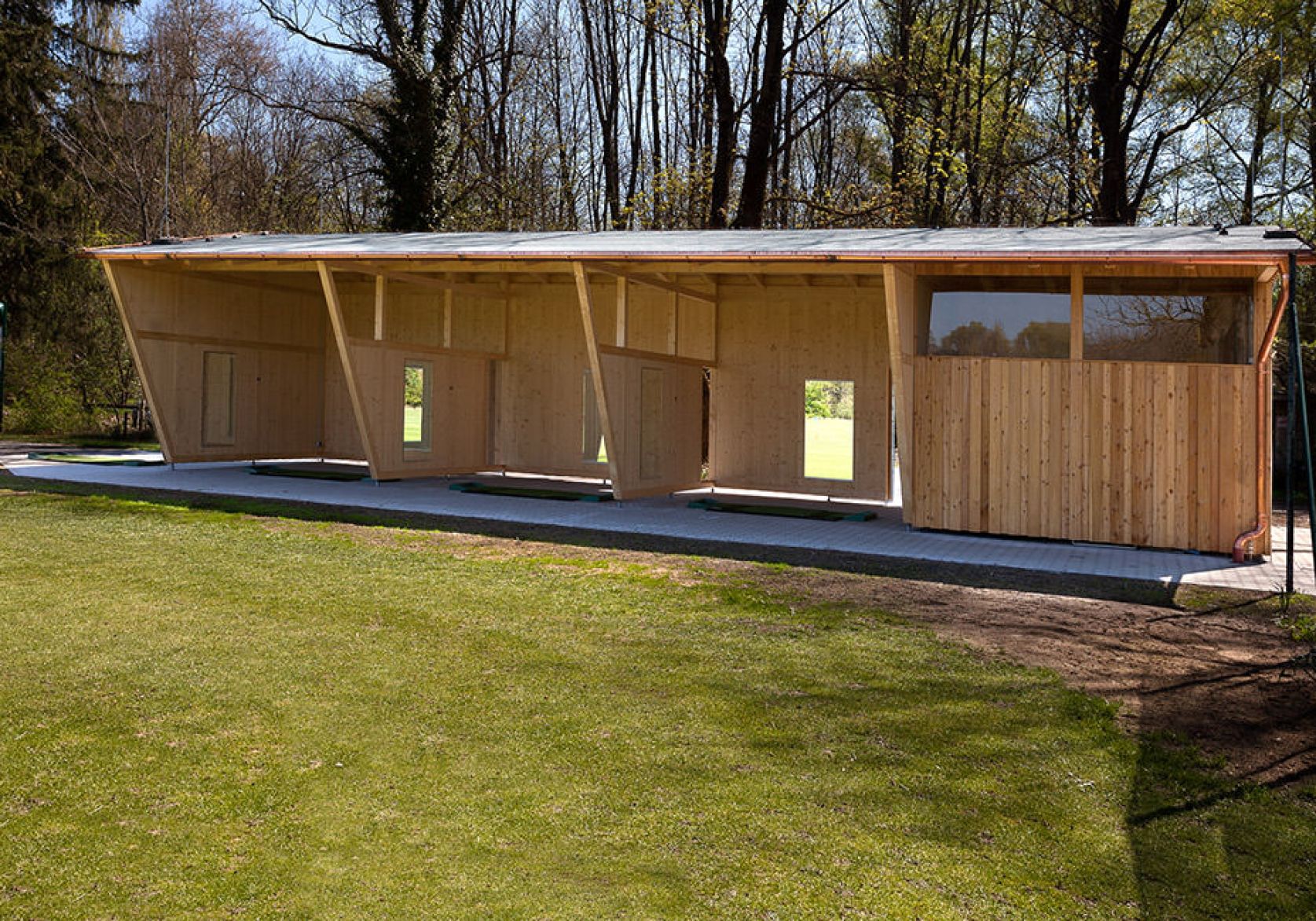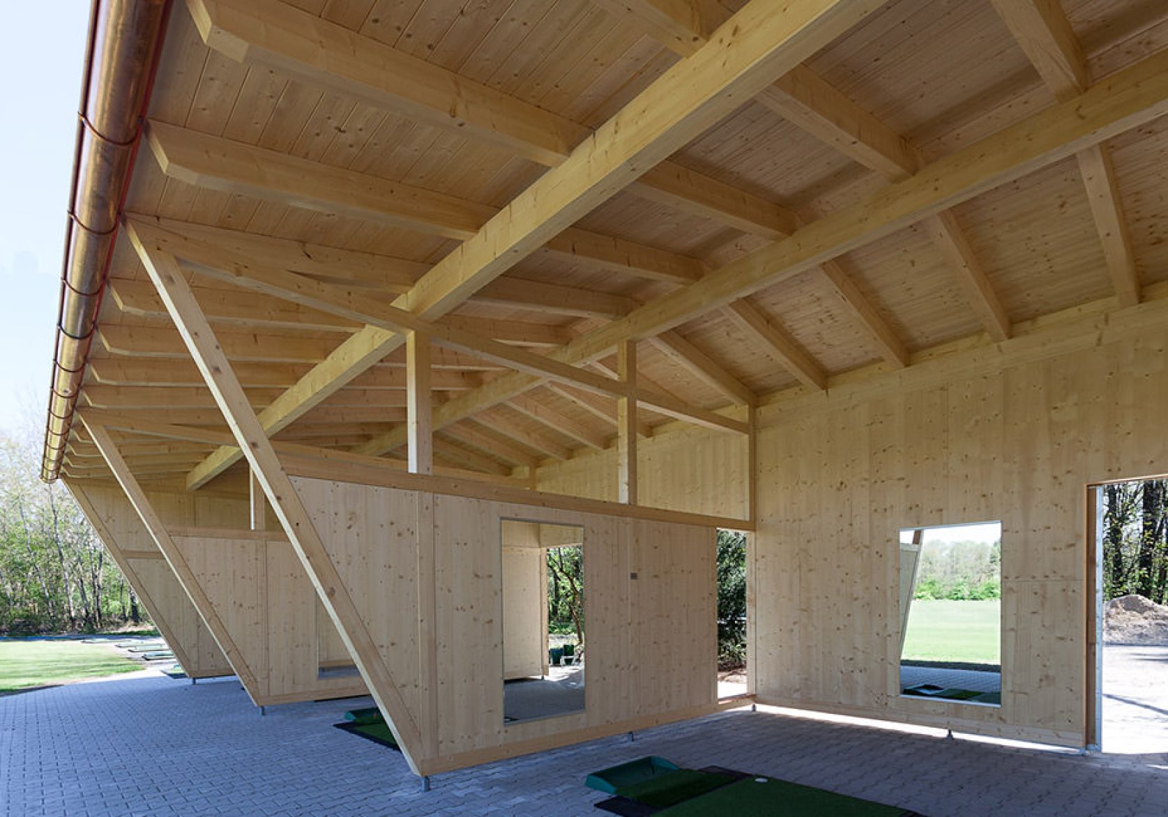 Erneuerung der Driving Range Golfclub Dachau nach Brandschaden Frank Zimmerei und Holzbau GmbH&Co.KG München - Header Linien Frank Zimmerei und Holzbau GmbH&Co.KG München - Header Hintergrund