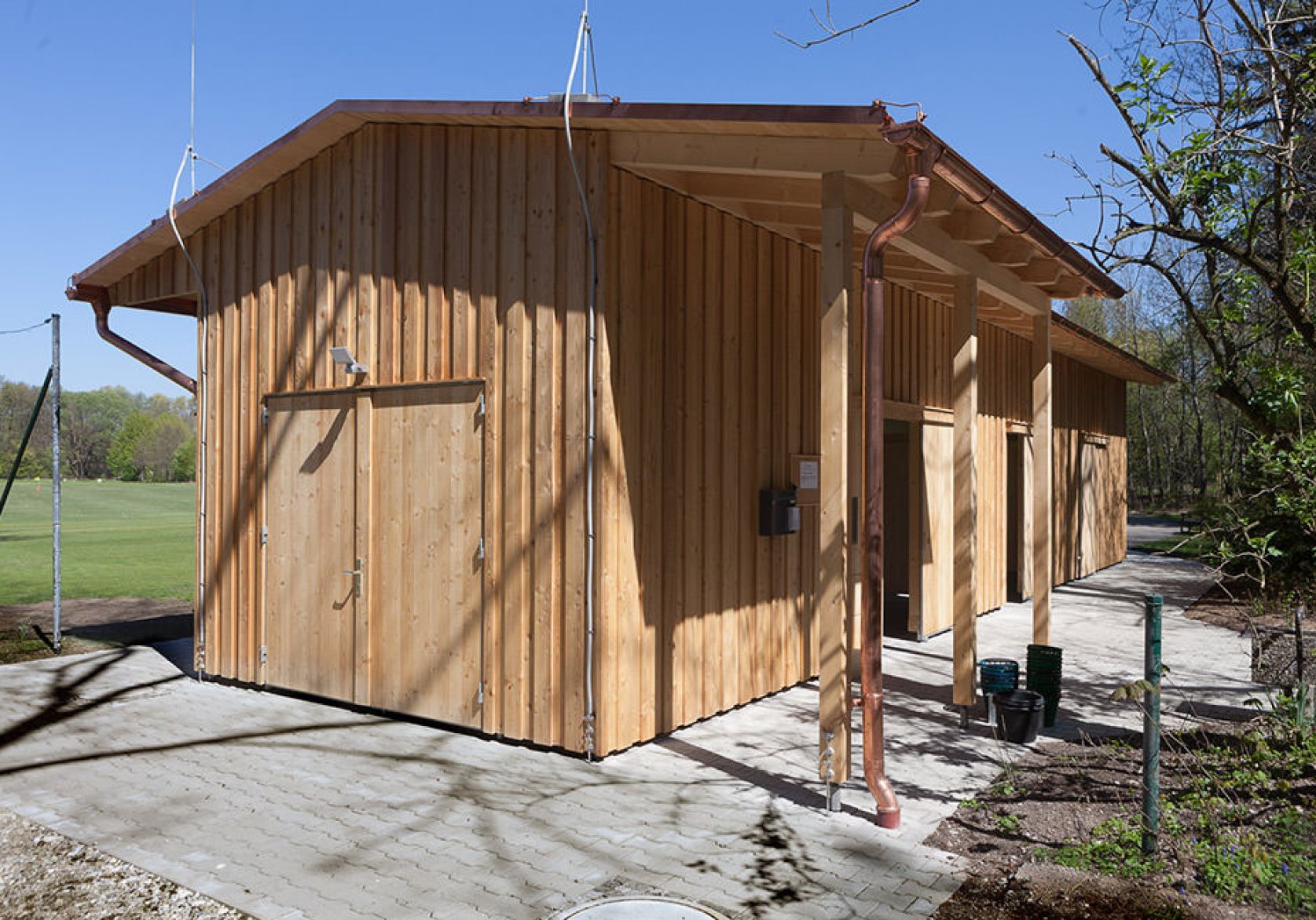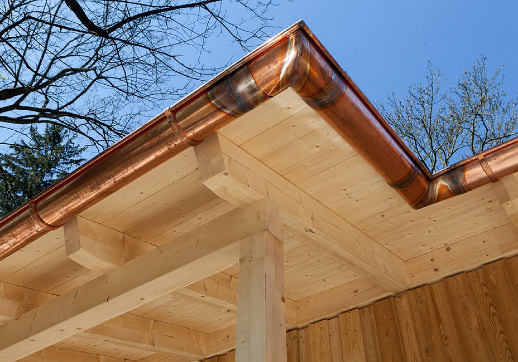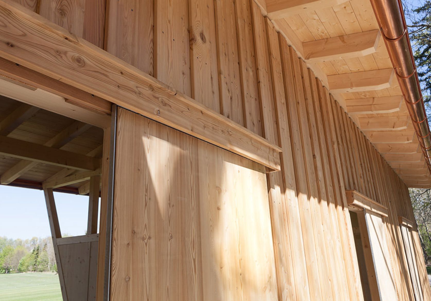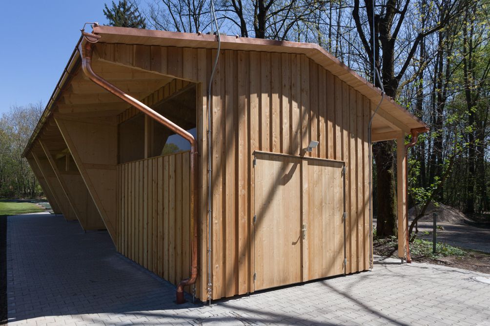 • Zimmermannsmäßige Holzkonstruktion mit Lärchenholz-Verschalung