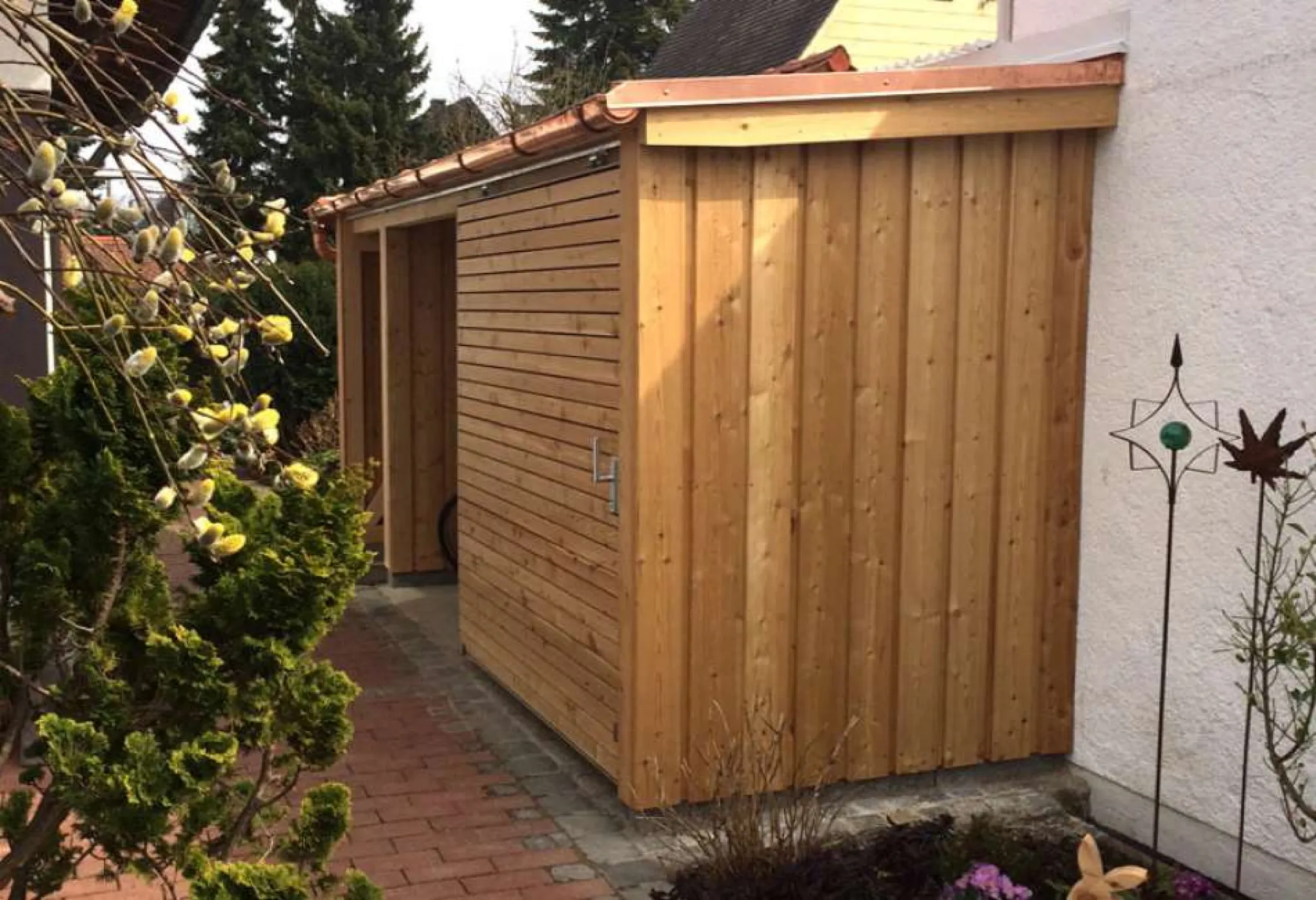 So schön und praktisch können Gartenhäuser sein, auch wenn wenig Platz da ist. Wir fertigen Ihr Gartenhaus ganz individuell nach Ihren Vorstellungen. So bekommen Sie genau das Gartenhaus, das auf Ihr Grundstück passt.