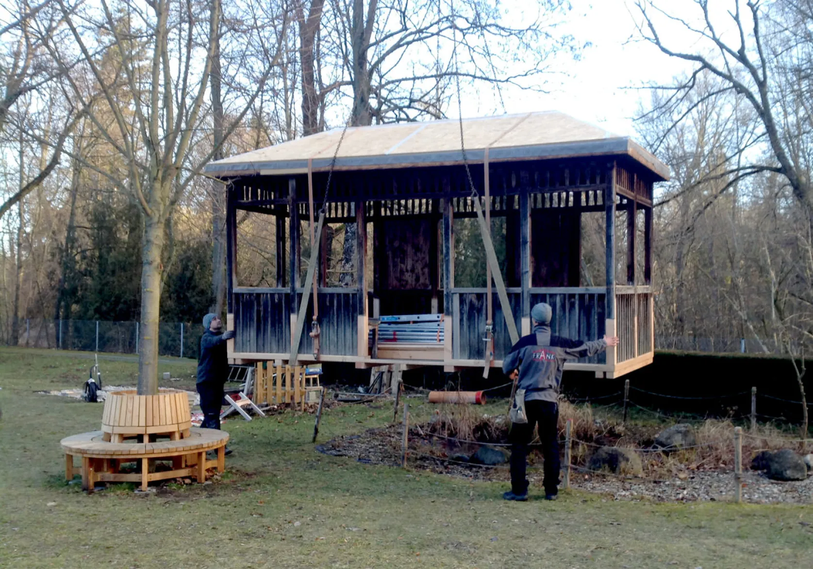 Sanierung einer historischen denkmalgeschützten Salettl-Konstruktion Frank Zimmerei und Holzbau GmbH&Co.KG München - Header Linien Frank Zimmerei und Holzbau GmbH&Co.KG München - Header Hintergrund