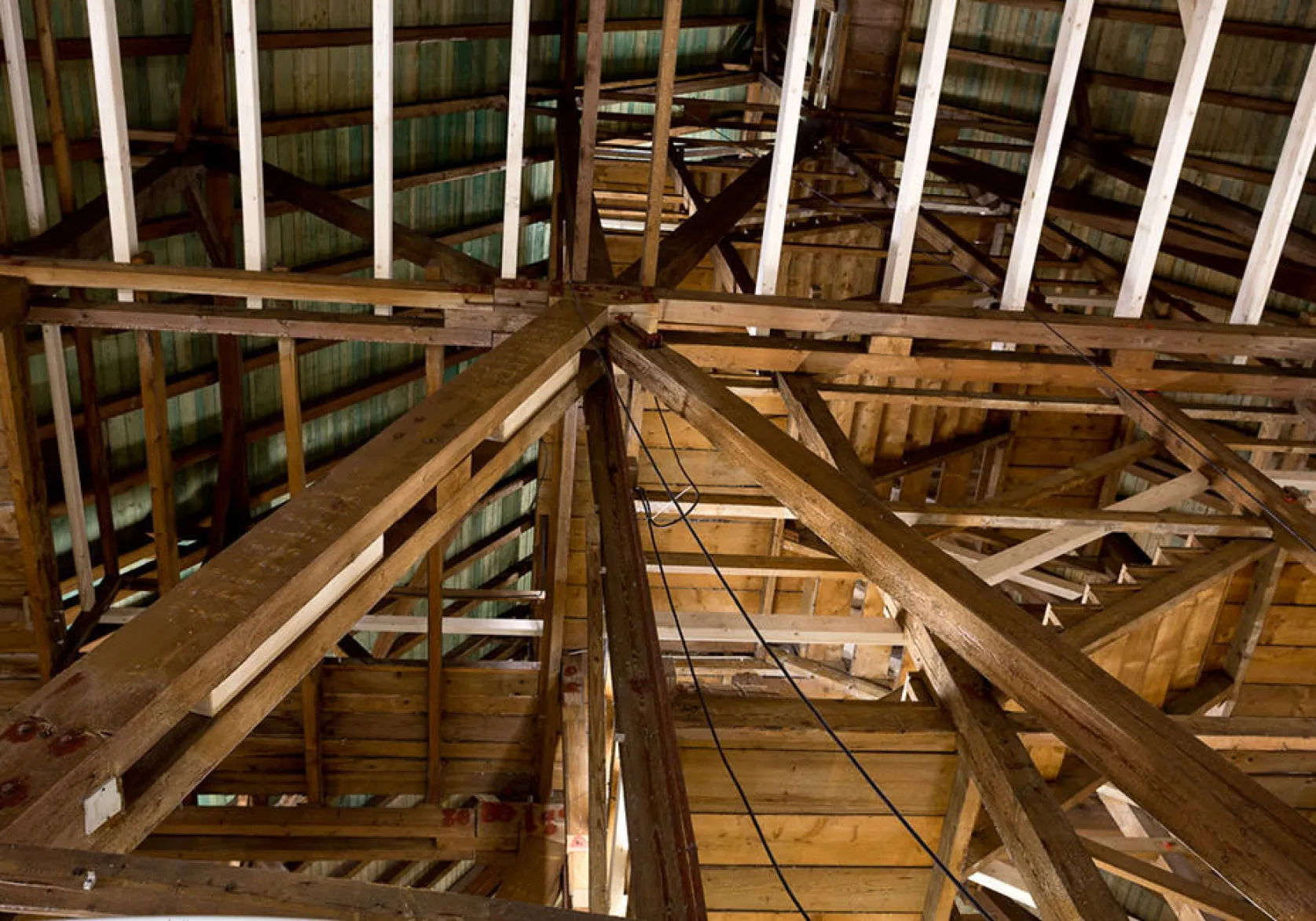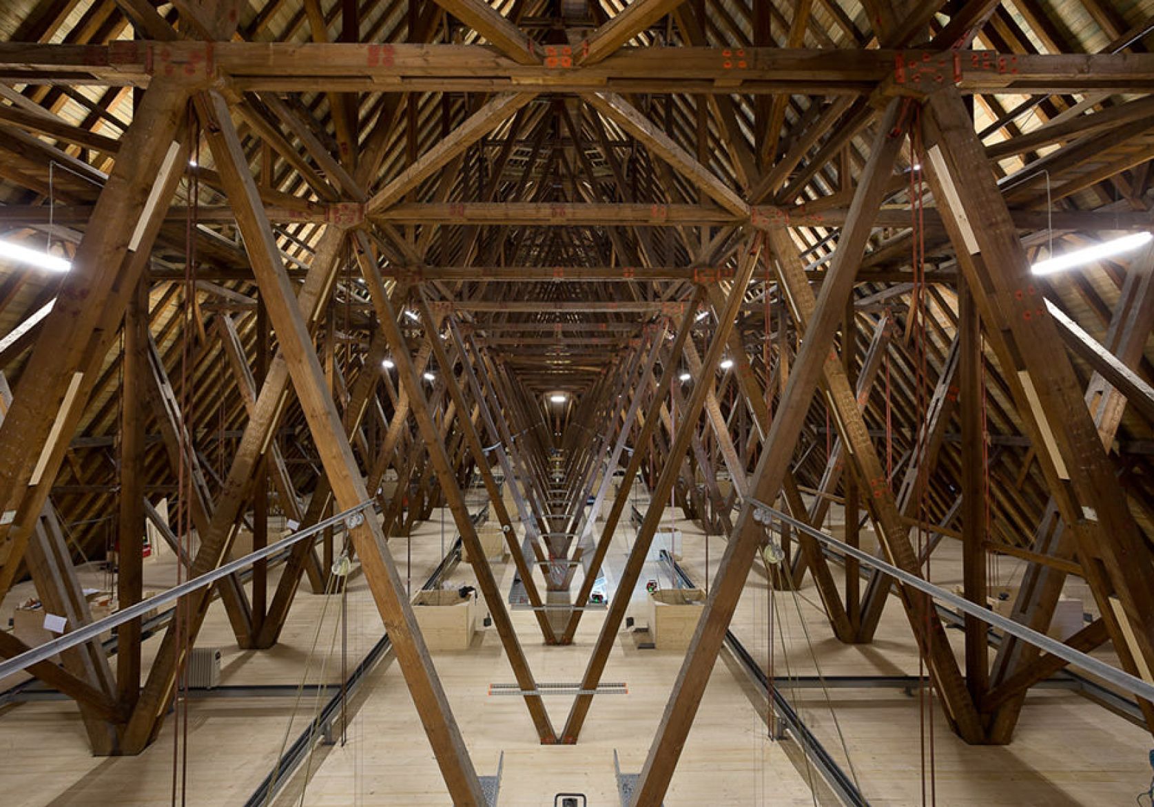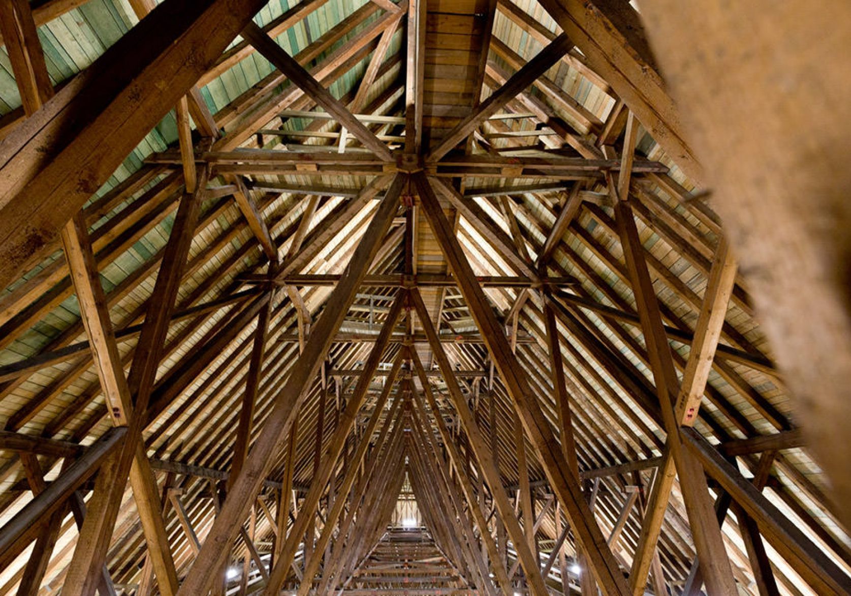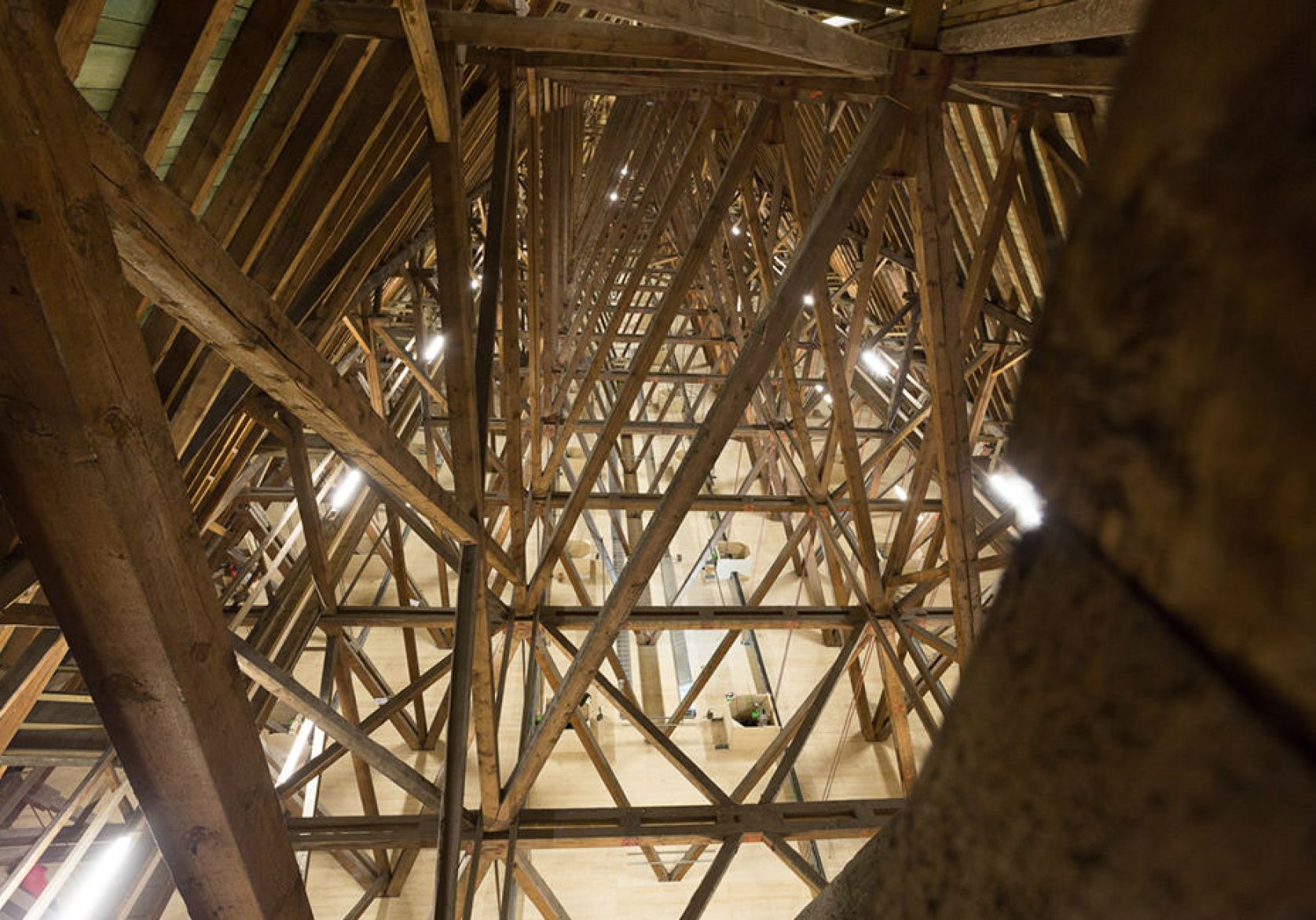 - Reparatur geschädigter Mittelpfette neben Nordturm