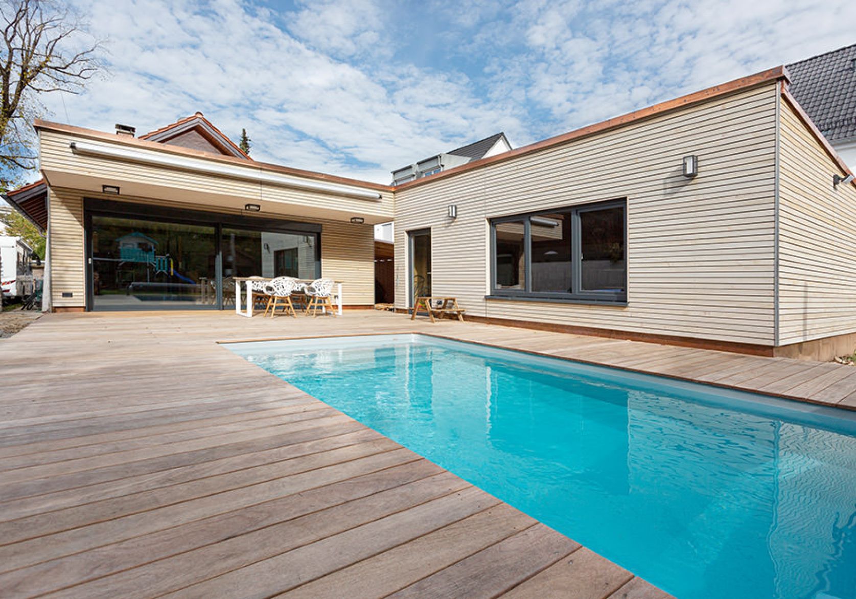 - Anbau in vorgefertigter Holzrahmenbauweise um die Bauzeit zu verkürzen