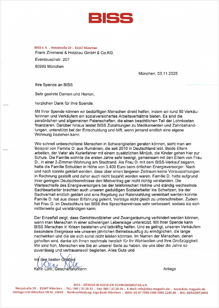 Spende an BISS
